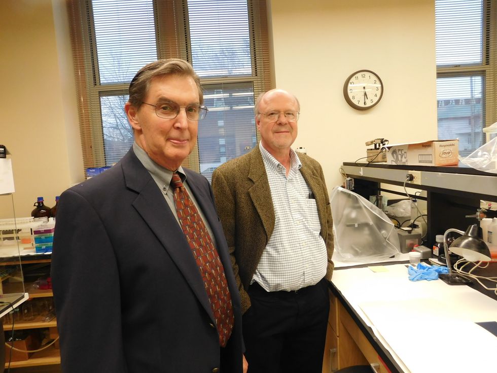 Researchers Fred vom Saal and Wade Welshons at their University of Missouri lab. (Credit: Brian Bienkowski)