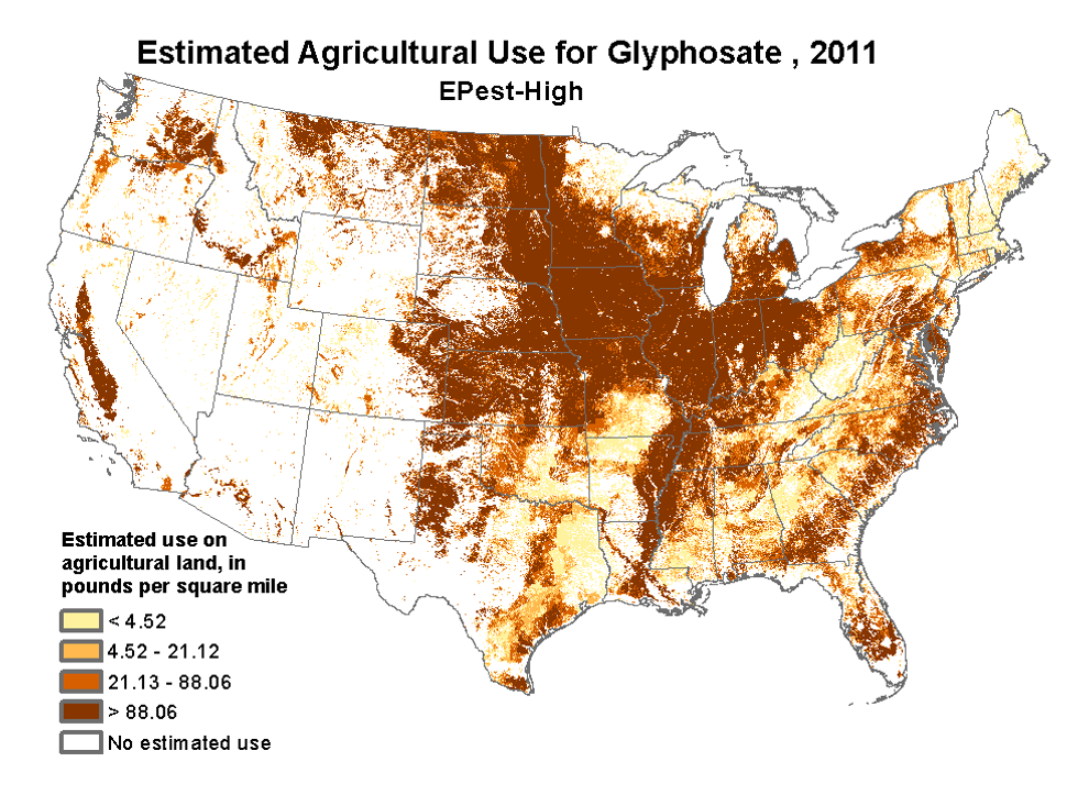Glyphosate is one of the most widely used herbicides in history. Farmers in 2014 sprayed enough of the chemical to cover every acre of cropland in the entire world with nearly a half-pound of the herbicide, according to a 2016 study published in Environmental Sciences Europe.