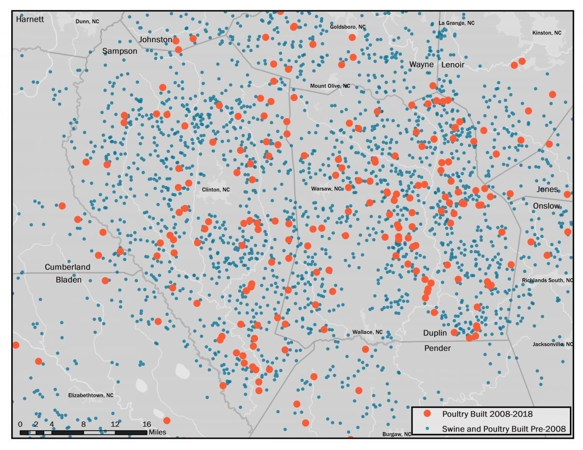 Poultry operations in Sampson and Duplin counties. (Credit: EWG, Waterkeeper Alliance)